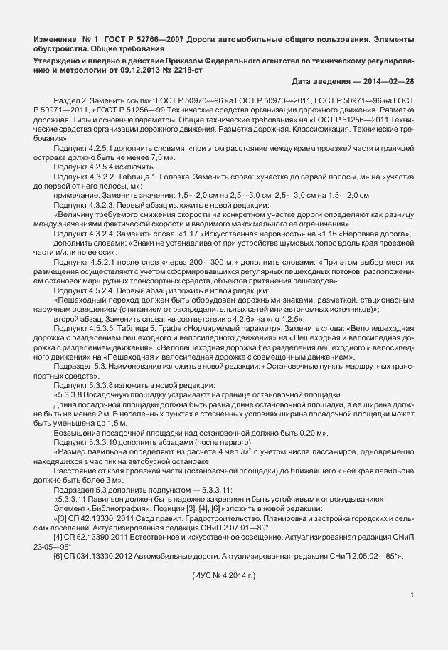 Изменения № 1 ГОСТ Р 52766-2007 «Дороги автомобильные общего пользования. Элементы обустройства. Общие требования» (png)
