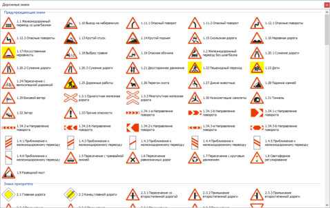 Для знаков, содержащих текст, это поле будет полем ввода текста (скорость, масса, зона действия,...). В этом случае поле Примечание является обязательным. Если нужно оставить его пустым (например для знаков 1.13, 1.14, 3.4), то введите пробел.