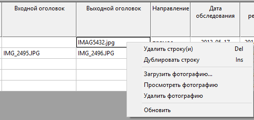 Добавить чертёж к фотографии можно как в процессе ввода новой трубы в форме ввода, так и для ранее введённой трубы. В последнем случае редактор вызывается двойным щелчком мыши по ячейке с фотографией в ведомости труб или выбором пункта Просмотреть фотографию в контекстном меню выбранной ячейки.
