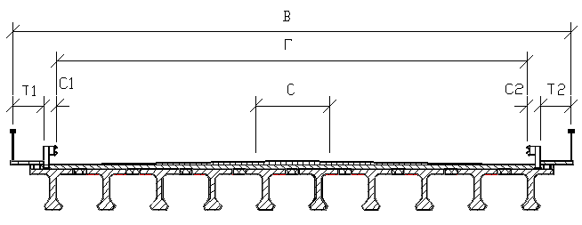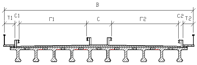 Т1, Т2 - ширины, соответственно, левого и правого тротуаров (ширина ничем не ограниченного прохода);